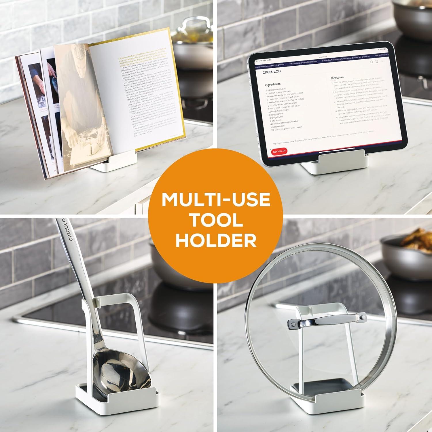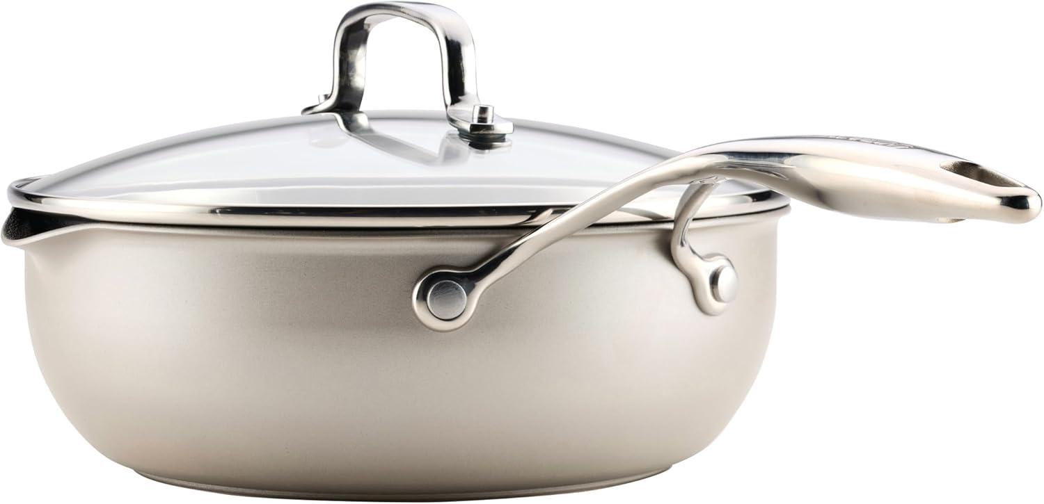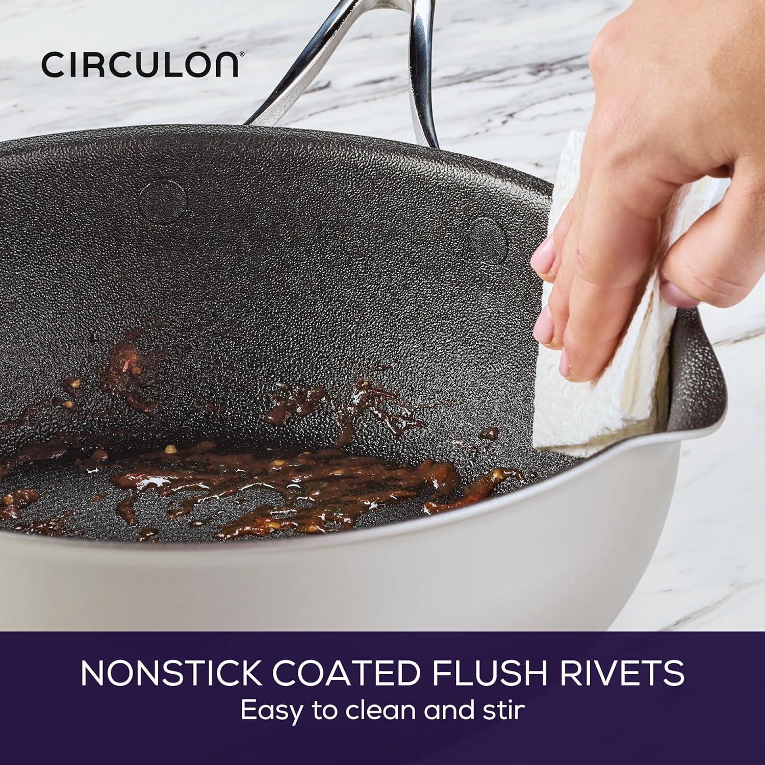 Clear out your overcrowded cabinet and replace every pot, pan, and lid with the Circulon Infinity Pan-the greatest all-in-one nonstick pan ever made. Engineered to do it all, the Infinity Pan handles everything from searing and sautéing to boiling, frying, steaming, straining, baking, and beyond. Built with ScratchDefense, Circulon’s toughest nonstick yet, the Infinity Pan is metal-utensil safe and 130x longer lasting than traditional nonstick*. It stands up to high heat and daily use without flaking, scratching, or sticking. The Infinity Pan is 70% deeper than the average frying pan and delivers 50% more capacity for big-batch meals, with a 9.5-inch wide, flat cooking surface for faster heating and perfect searing. Dual pour spouts and a straining lid make draining easy, while flush rivets and rounded sidewalls prevent messes and make stirring effortless. Oven-safe to 500 F (glass lid to 350 F), dishwasher-safe, and induction compatible, it even comes with a multipurpose countertop stand for your lid, utensils, tablet, or recipes. Circulon Infinity Pan. One pan. Endless possibilities. *Than leading competitor nonstick in a metal utensil scratch test performed at 200C/392F.